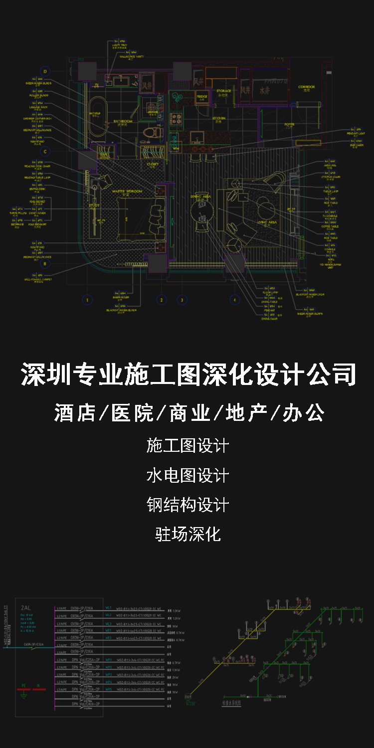 醫院施工圖設計、學校施工圖設計、購物中心施工圖設計、辦公空間施工圖設計、住宅施工圖設計、別墅施工圖設計、樣板房施工圖設計、售樓處施工圖設計、酒店施工圖設計。